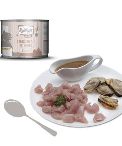 ¡Grandes perspectivas para los amantes del caldito! 😻 MjAMjAM Pava escaldada con mejillones en salsa es una receta pensada para gatos que disfrutan de comidas más jugosas y llenas de sabor, ideal para aportar un extra de hidratación a su dieta diaria 💧🍽️.