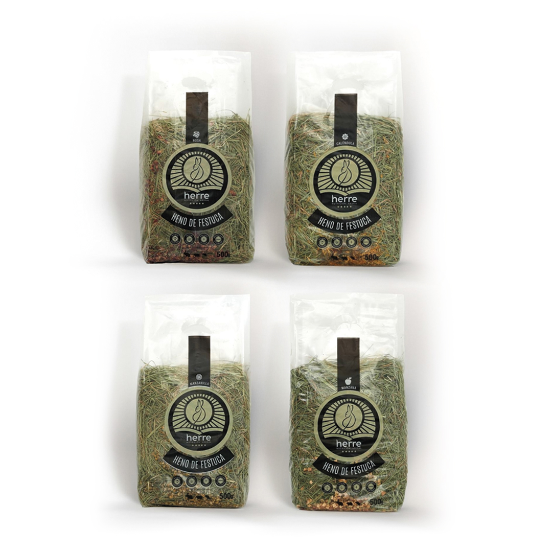El Multipack Herre Henos con Sabores es la opción perfecta para ofrecer una alimentación variada, saludable y natural a tu pequeño herbívoro, con un importante ahorro frente a la compra individual. Este pack combina heno de festuca extra verde de alta calidad con diferentes ingredientes naturales que aportan sabor, aroma y beneficios funcionales.