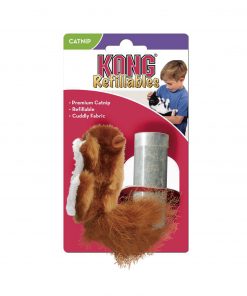 La Ardilla rellenable de Catnip de KONG ofrece a tu gato pura diversión, el largo pelo de su cola le atraerá para cazarlo además del atrayente olor de hierba gatera de su interior.