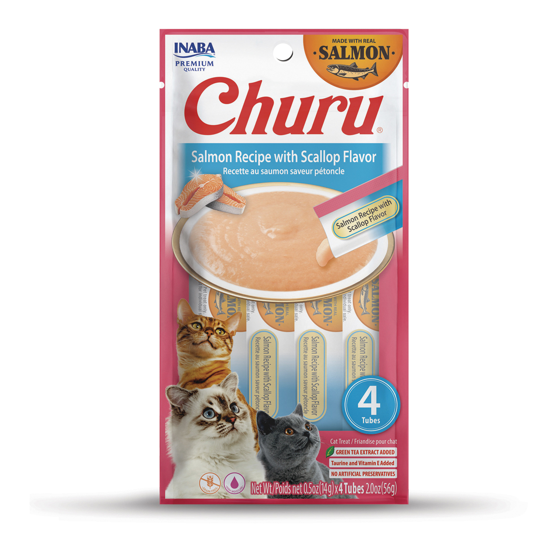 Ofrece a tu gato un snack delicioso y nutritivo con Inaba Churu Salmón con Vieira, un alimento complementario cremoso elaborado con salmón noruego y vieiras de alta calidad. Su textura suave y cremosa lo hace irresistible, ideal para ofrecer directamente de la mano, como premio o para añadir un toque de sabor a la comida habitual.