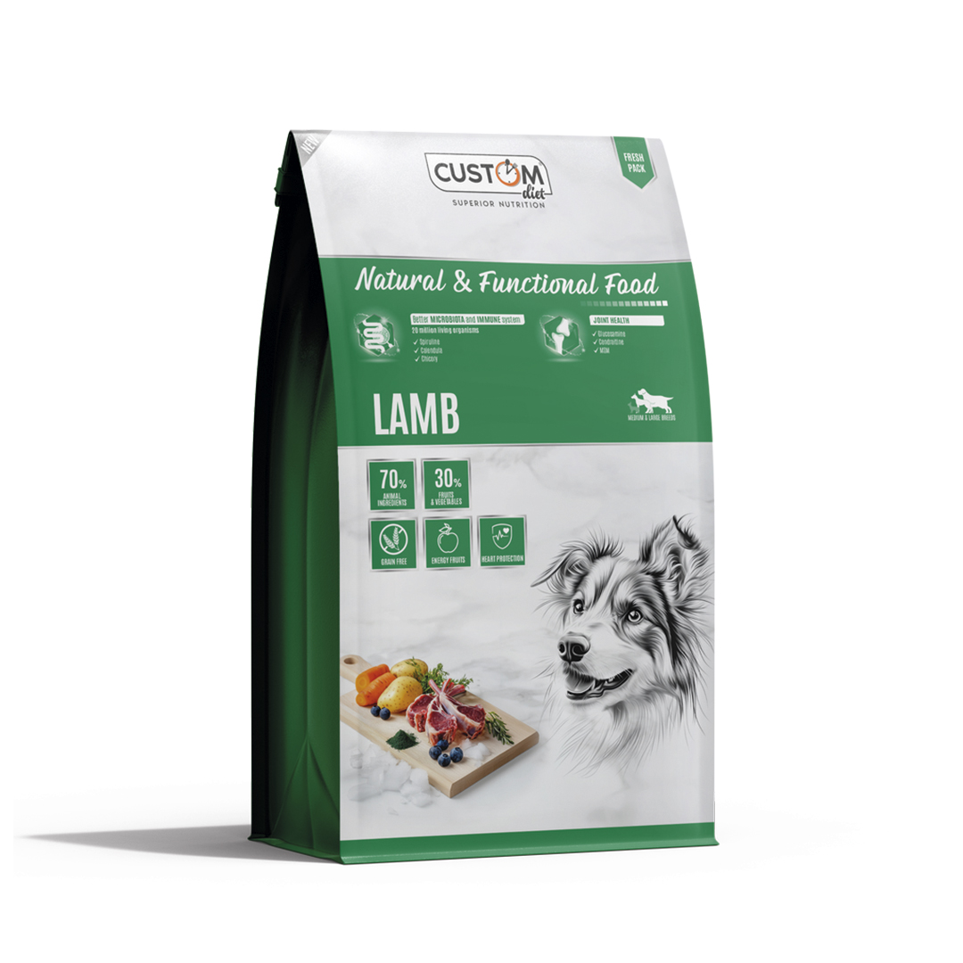 Además, Custom Diet Cordero contiene glucosamina, condroitina y taurina, nutrientes clave para proteger las articulaciones, cuidar la salud del corazón y mantener la vitalidad. Su aporte de probióticos vivos contribuye a equilibrar la flora intestinal y reforzar las defensas naturales.